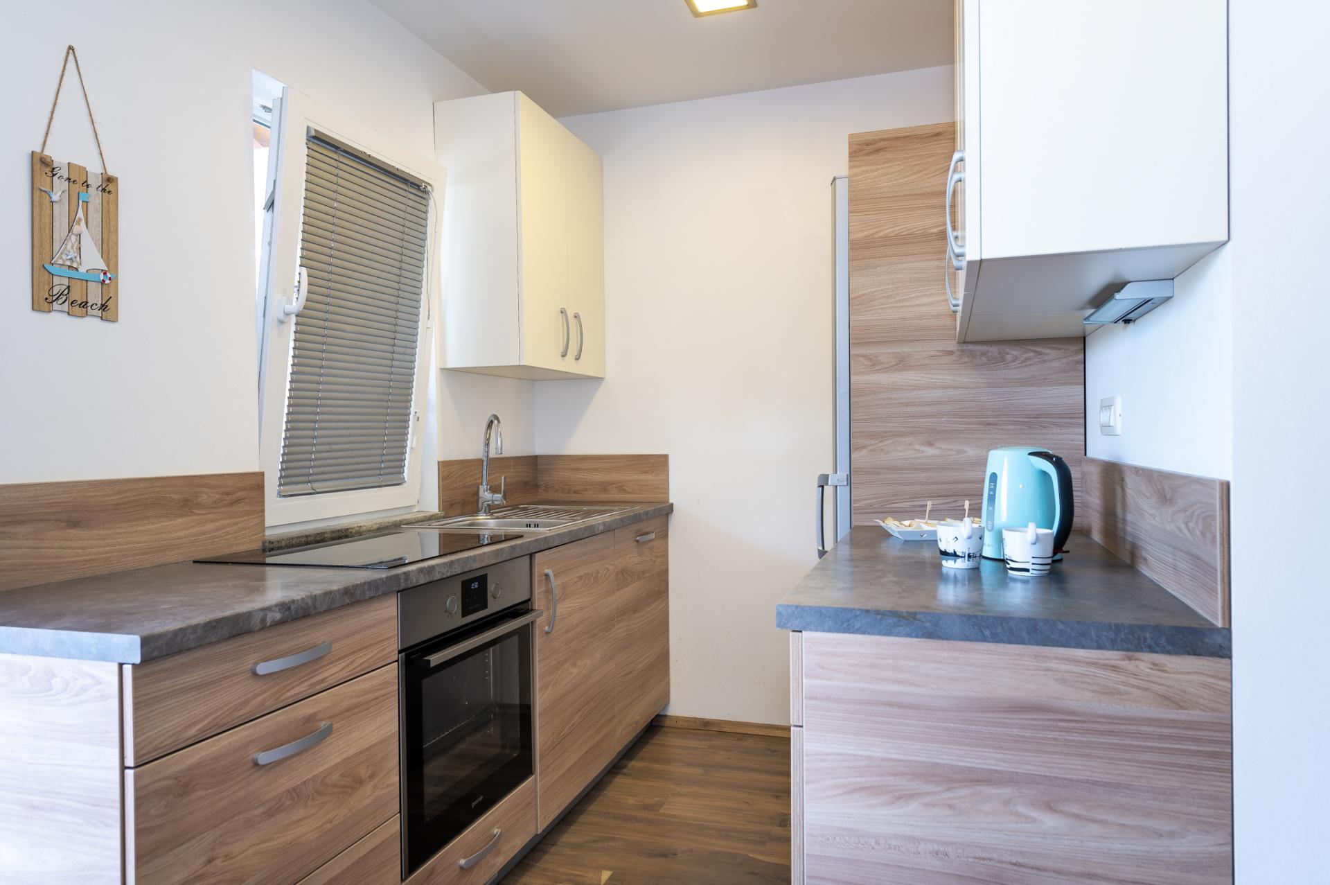 Decorated in Starfish colours, light peach. Accommodates 6 people in 2 bedrooms and livingroom. Both bedrooms have double bed and we offer a comfortable sofa in living room for 2 extra people. Next to the bedroom is a bathroom with a shower and a toilet. Fully equipped kitchen has a dishwasher, fridge, freezer, oven, cook, dishes, kitchen linen... In the living room is situated SAT TV and air condition. Free WIFI is avalable in whole home. You can also relax at spacious terrace overlooking the sea. Dimensions of a Starfish Home are 40 m2.