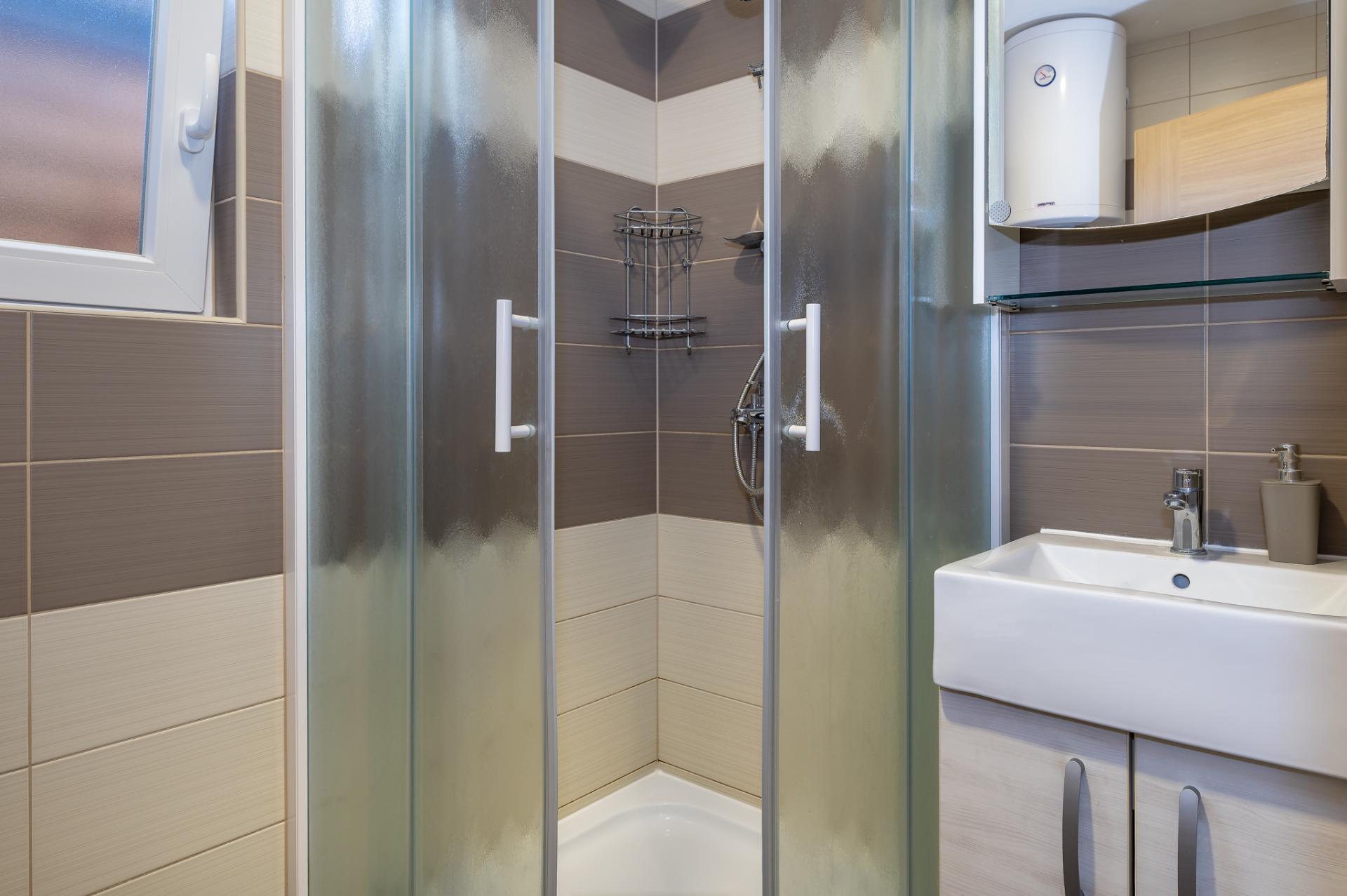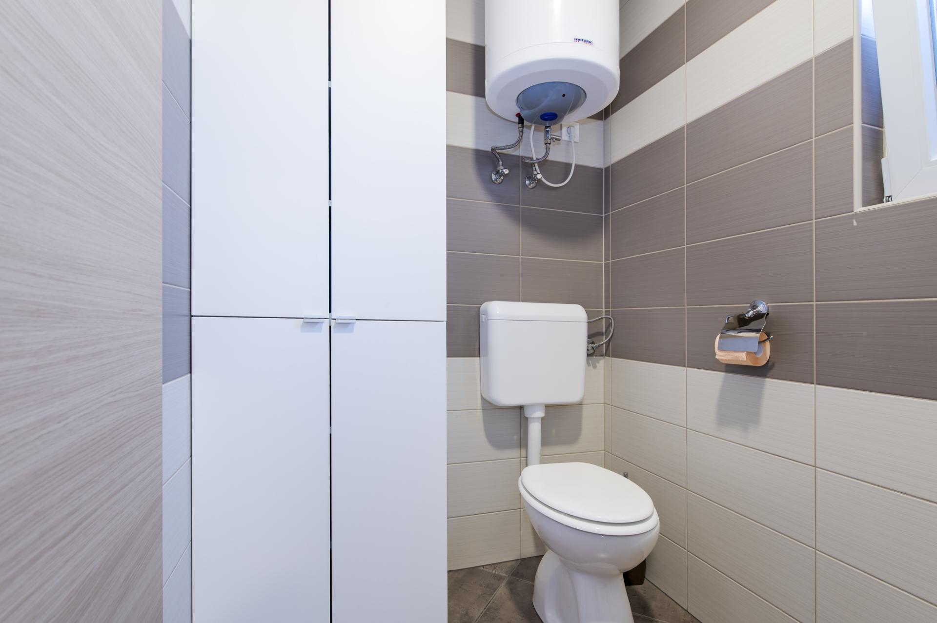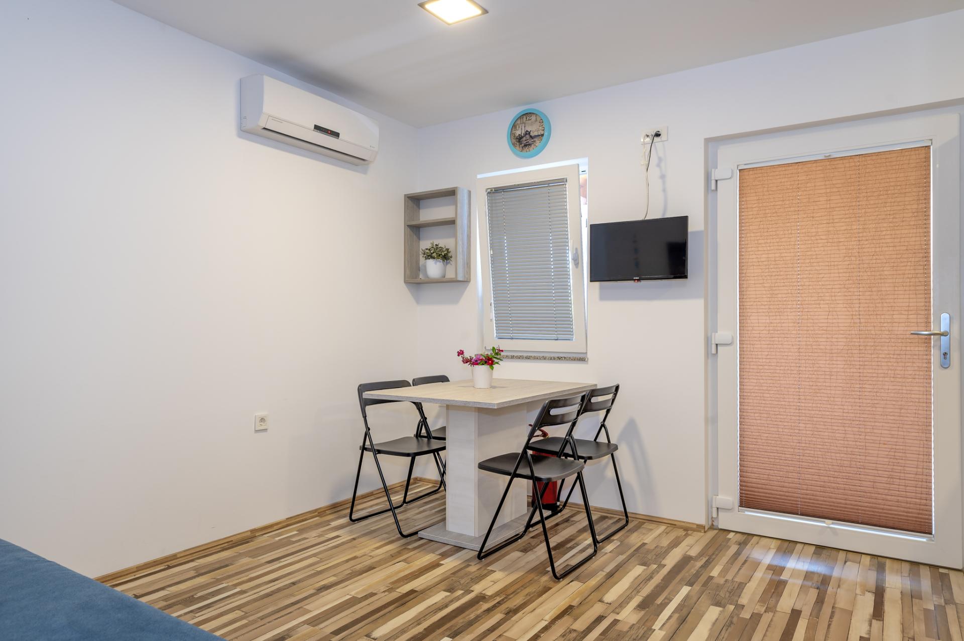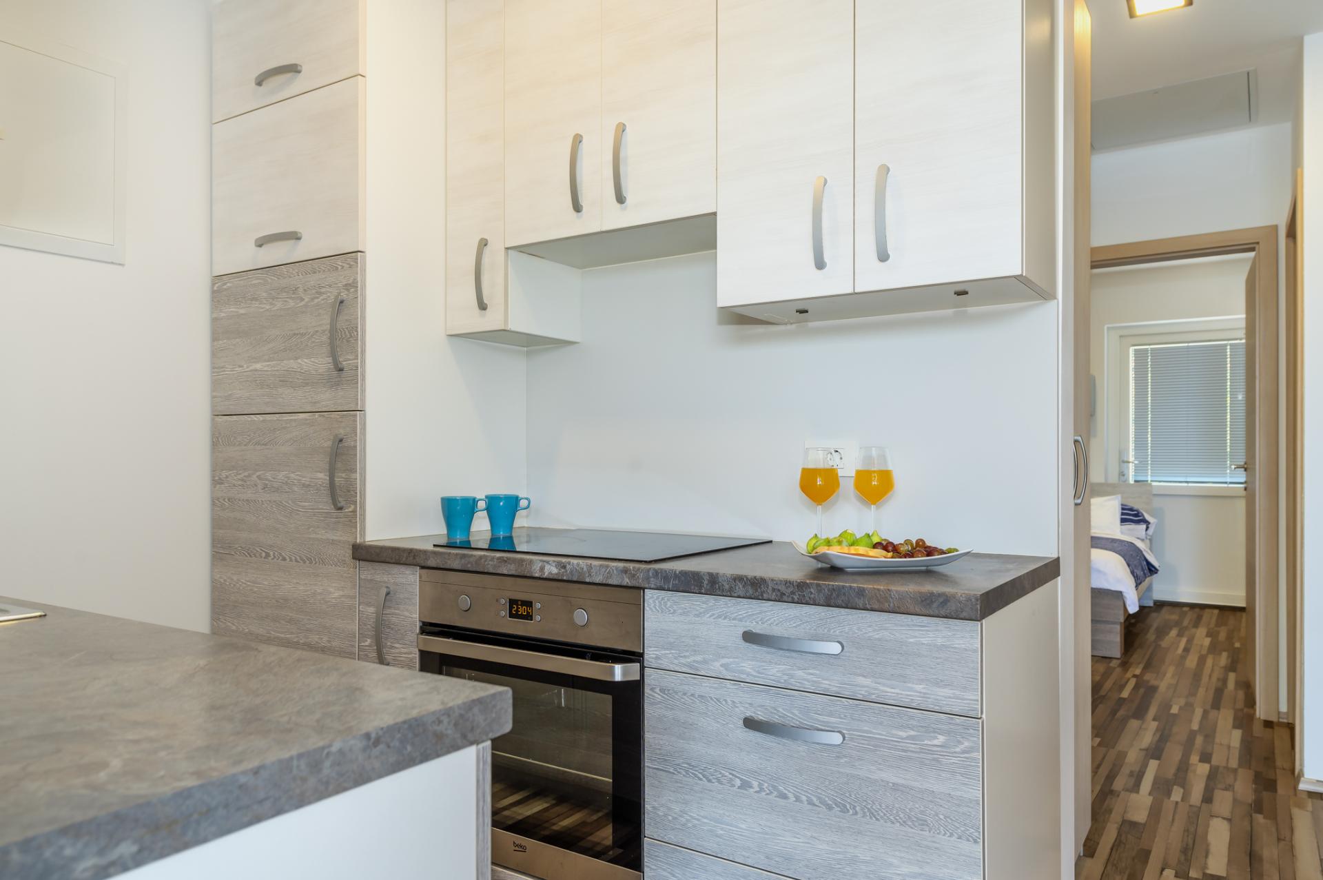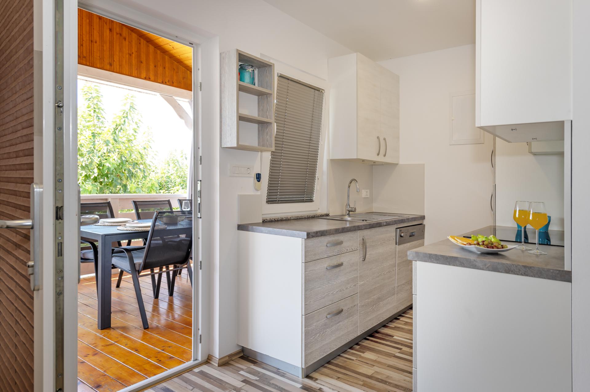 Accommodates 6 people in 2 bedrooms and livingroom. Both bedrooms have double bed and we offer a comfortable sofa in living room for 2 extra people. Next to the bedroom is a bathroom with a shower and a toilet. Fully equipped kitchen has a dishwasher, fridge, freezer, oven, cook, dishes, kitchen linen... In the living room is situated SAT TV and air condition. Free WIFI is avalable in whole home. You can also relax at spacious terrace overlooking the sea. Dimensions of a Octopus Home are 40 m2.