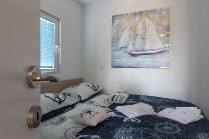 Dalla terrazza si estende una magnifica vista sulla baia e spiaggia. La terrazza ha 15 mq con tavolo e sedie. Nelle vicinanze (al massimo 20 metri oppure più vicino e secondo la disponibilità) si trova il parcheggio che è gratis.