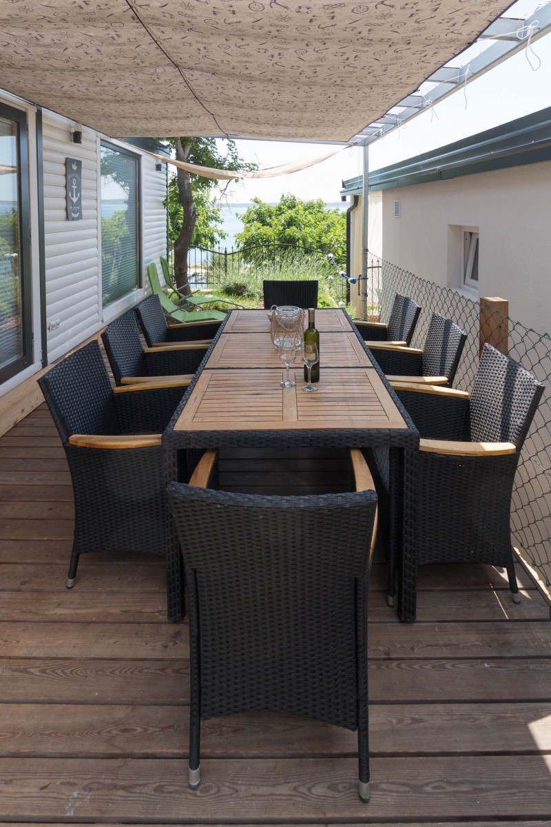 Rilassati (diciamo odmori) con vista sul mare in case mobili di nuova costruzione e moderne, situate in seconda fila nel campeggio. Sono completamente attrezzate per trascorrere le vacanze più confortevoli. Possono ospitare 4 o 6 persone. Puoi scegliere le dimensioni e tre design interessanti.