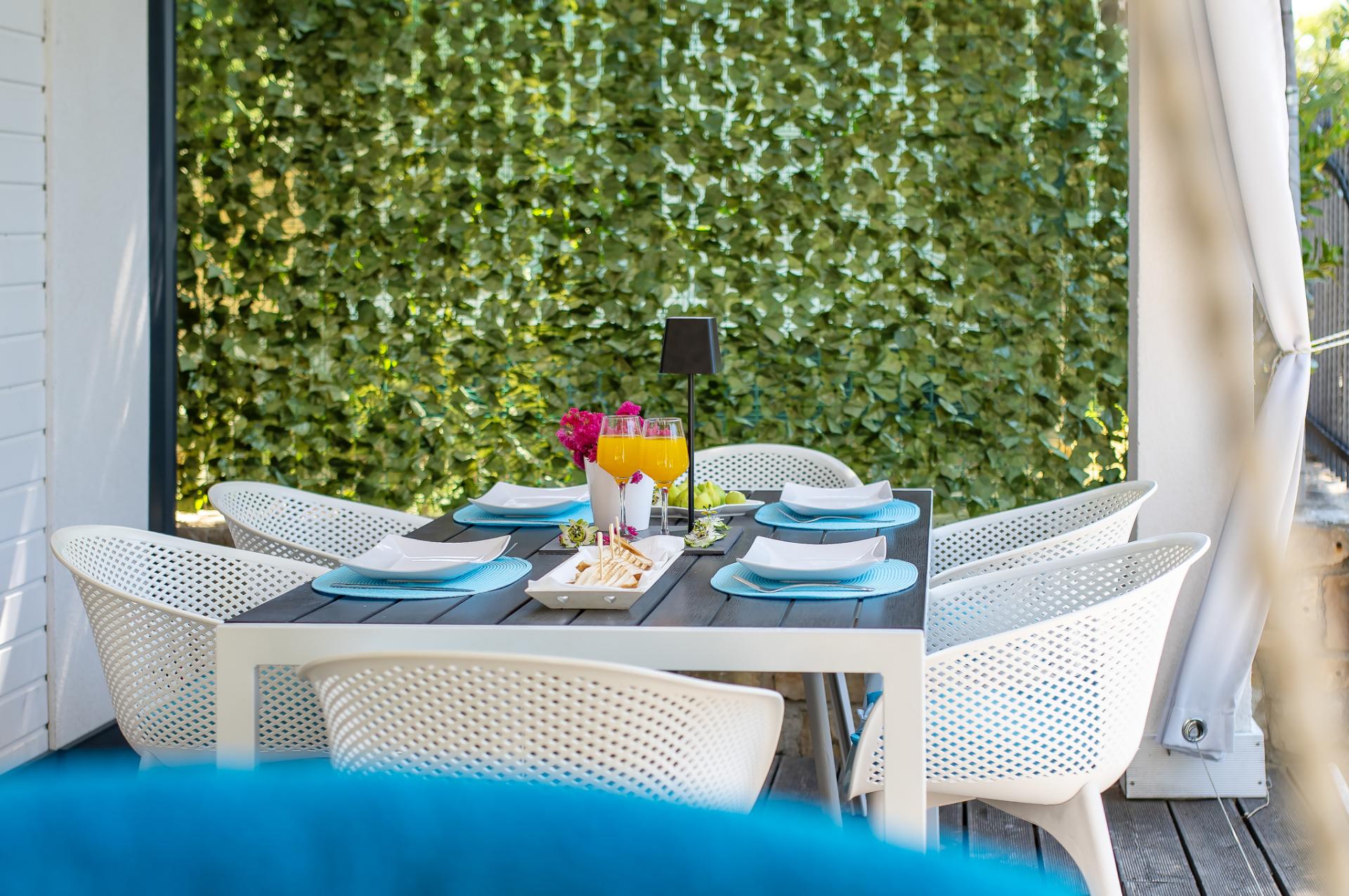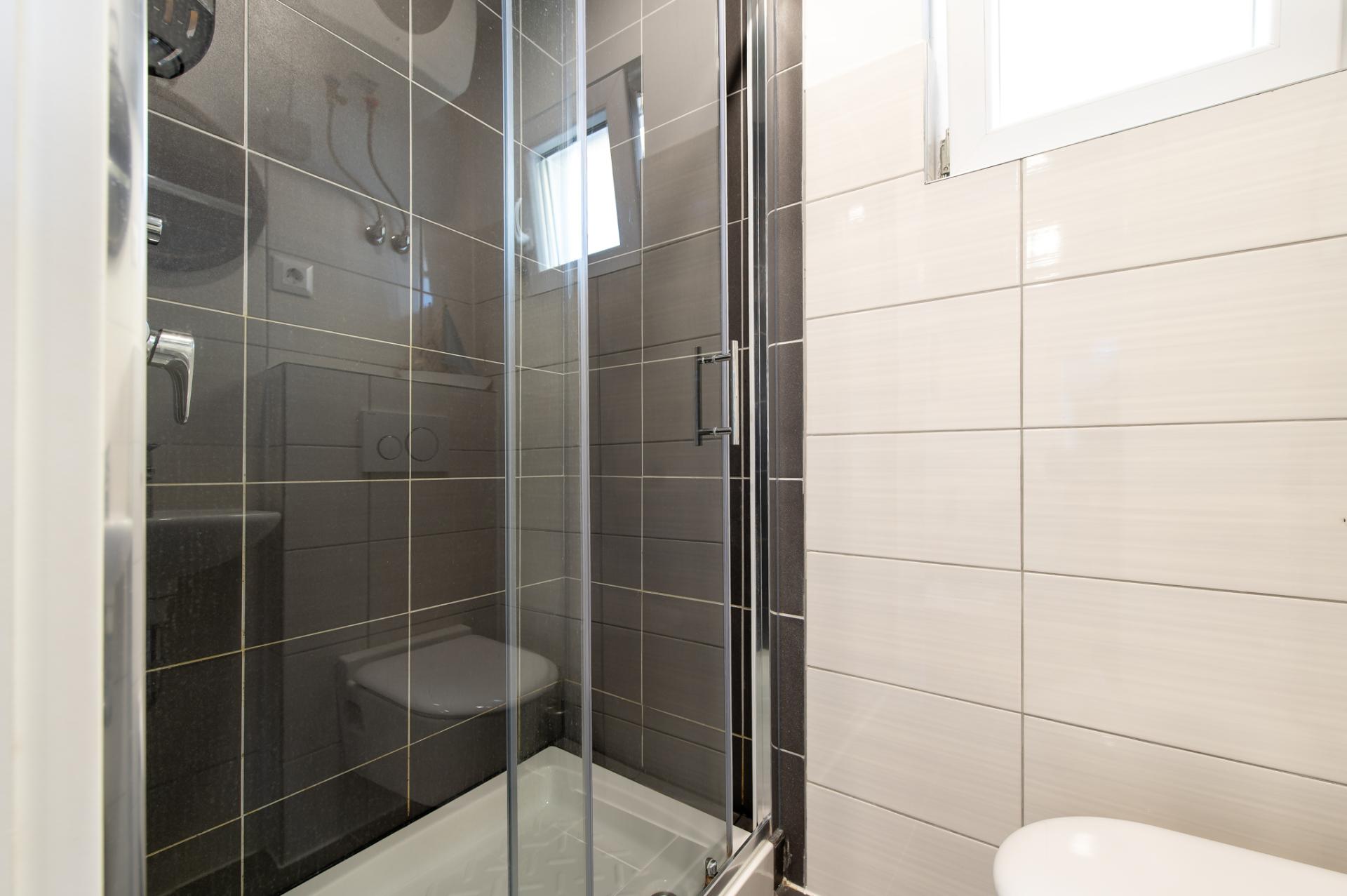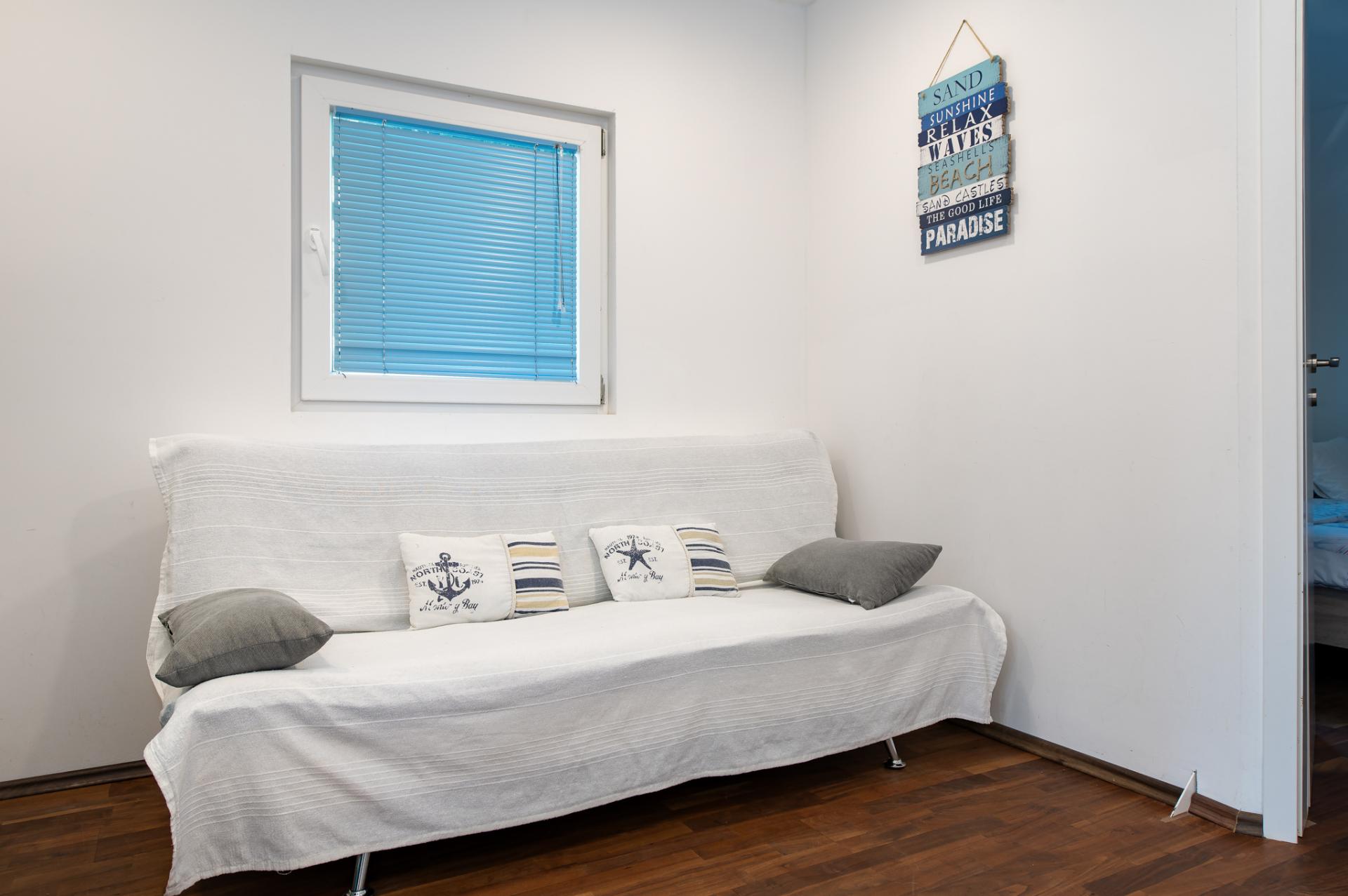 Dalla terrazza si estende una magnifica vista sulla baia e spiaggia. La terrazza ha 15 mq con tavolo e sedie. Nelle vicinanze (al massimo 20 metri oppure più vicino e secondo la disponibilità) si trova il parcheggio che è gratis.